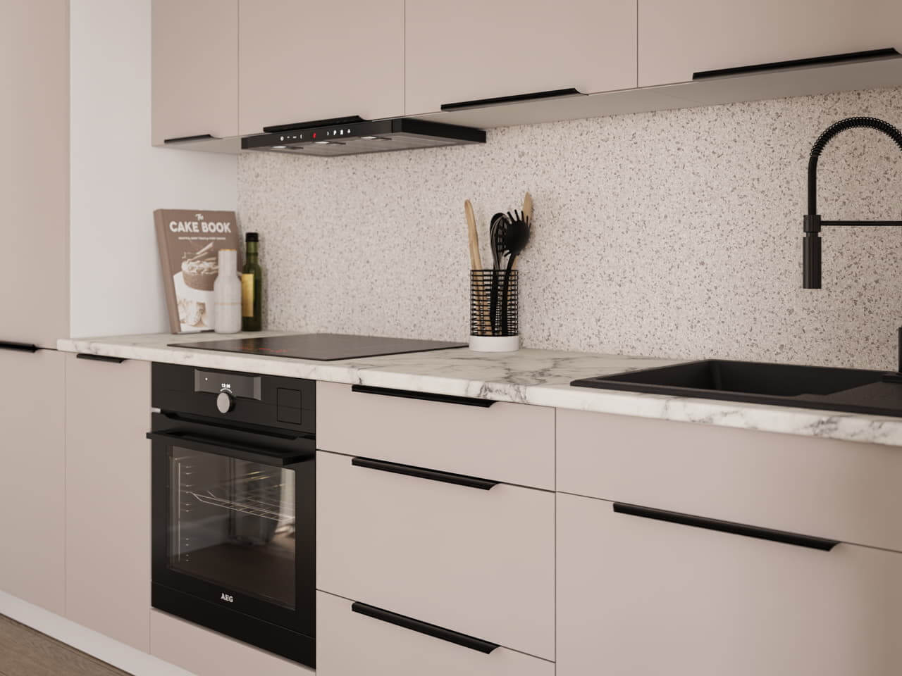 Kolekcja kuchni Como to harmonijne połączenie subtelnej elegancji i nowoczesnej funkcjonalności. Białe korpusy wprowadzają do wnętrza lekkość i świeżość, stanowiąc doskonałe tło dla stylowych, kaszmirowych frontów. Ten delikatny, ciepły odcień nadaje kuchni przytulnego charakteru, jednocześnie zachowując jej minimalistyczny i ponadczasowy wygląd.