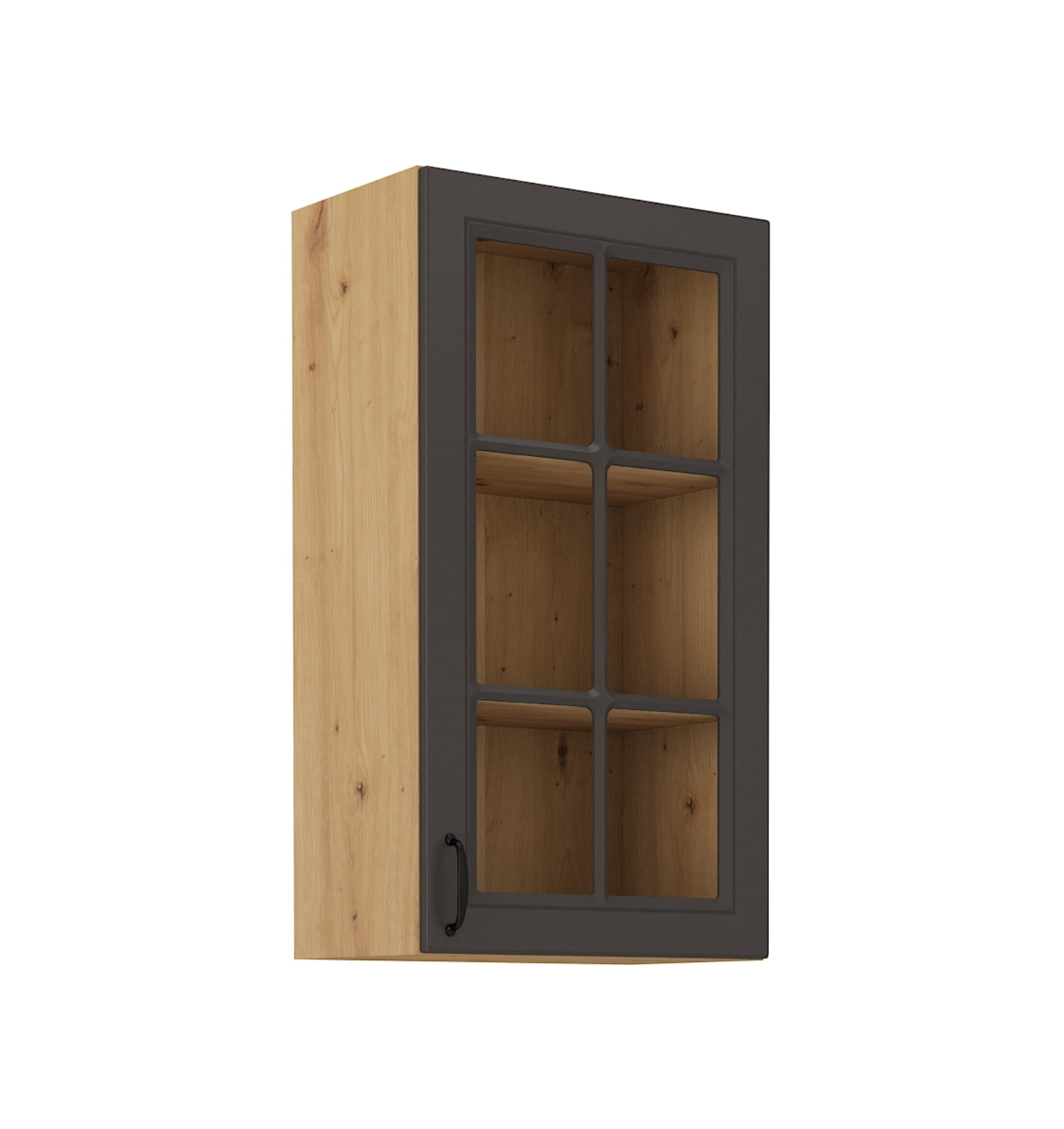 Stilo grafit / dąb artisan 40 GS-90 1F - szafka górna z witryną 40cm. Wyposażona została w trzy półki.