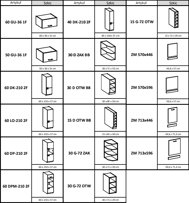 - mnogość szafek kuchennych pozwoli na dowolną konfigurację Twojej kuchni.