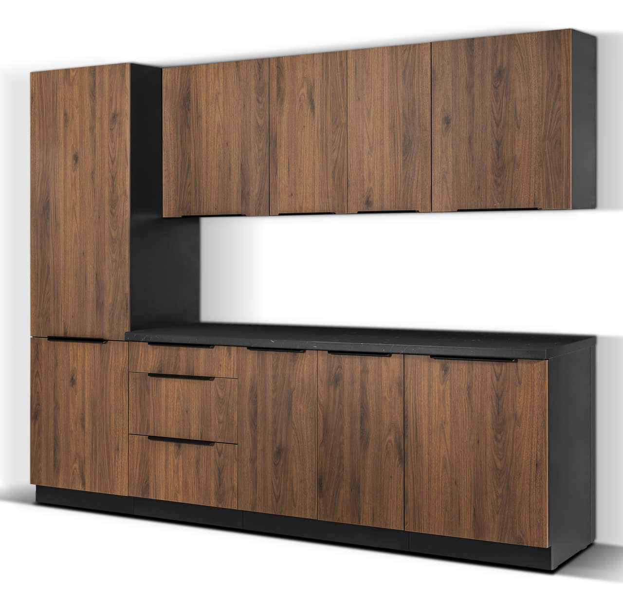 - połączenie korpusów w czerni z kolorem frontów orzech akapi,