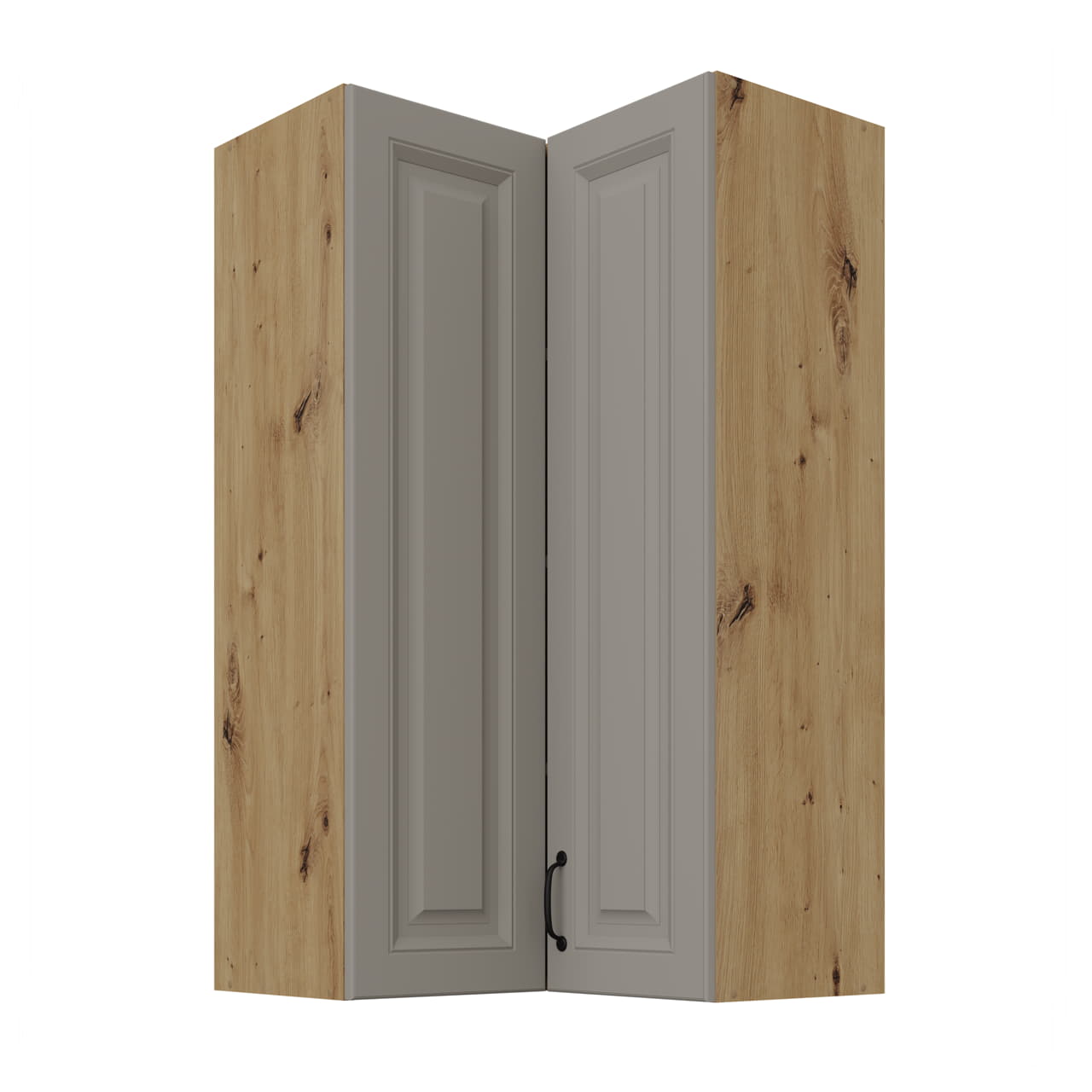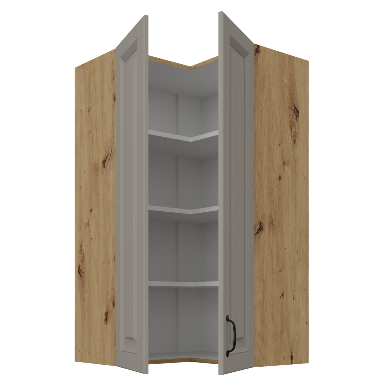Stilo Clay grey / dąb artisan 60x60 GN-108 (90°) 2F - szafka górna wisząca narożna. Wyposażona w dwa fronty i trzy półki.
