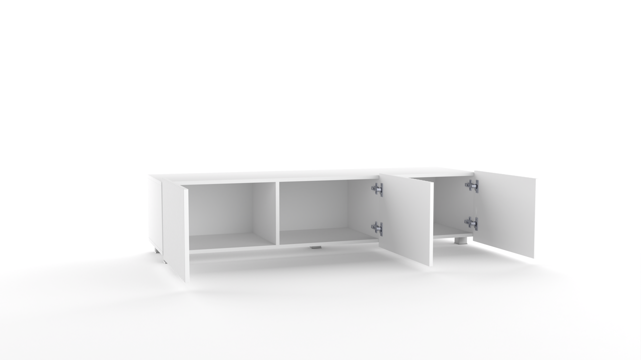 Charakterystycznym elementem kolekcji są delikatne pionowe frezy, które nadają meblom wyjątkowego charakteru, zachowując jednocześnie minimalistyczną estetykę. Matowe wykończenie oraz starannie dobrane materiały gwarantują trwałość i komfort użytkowania.