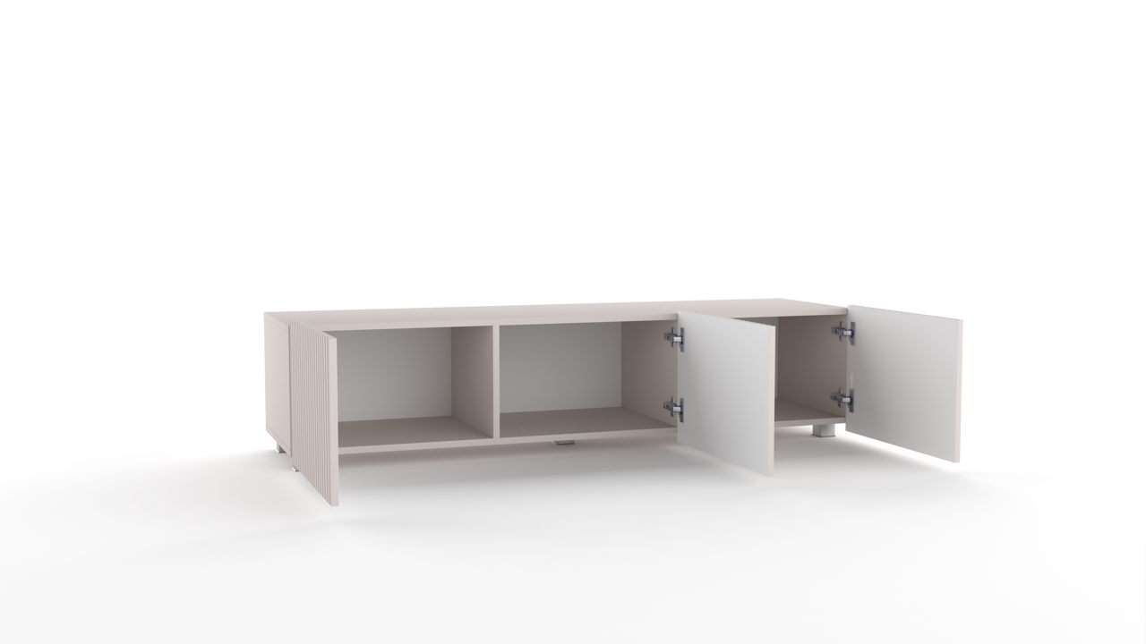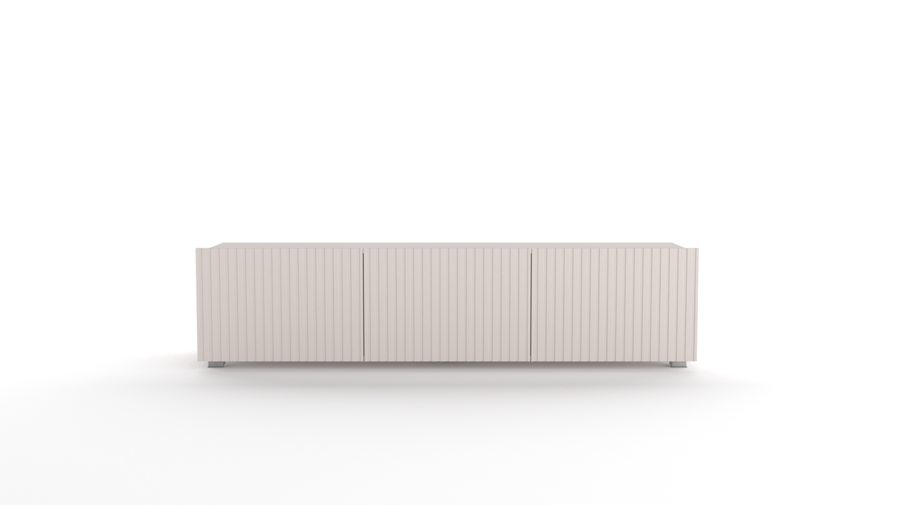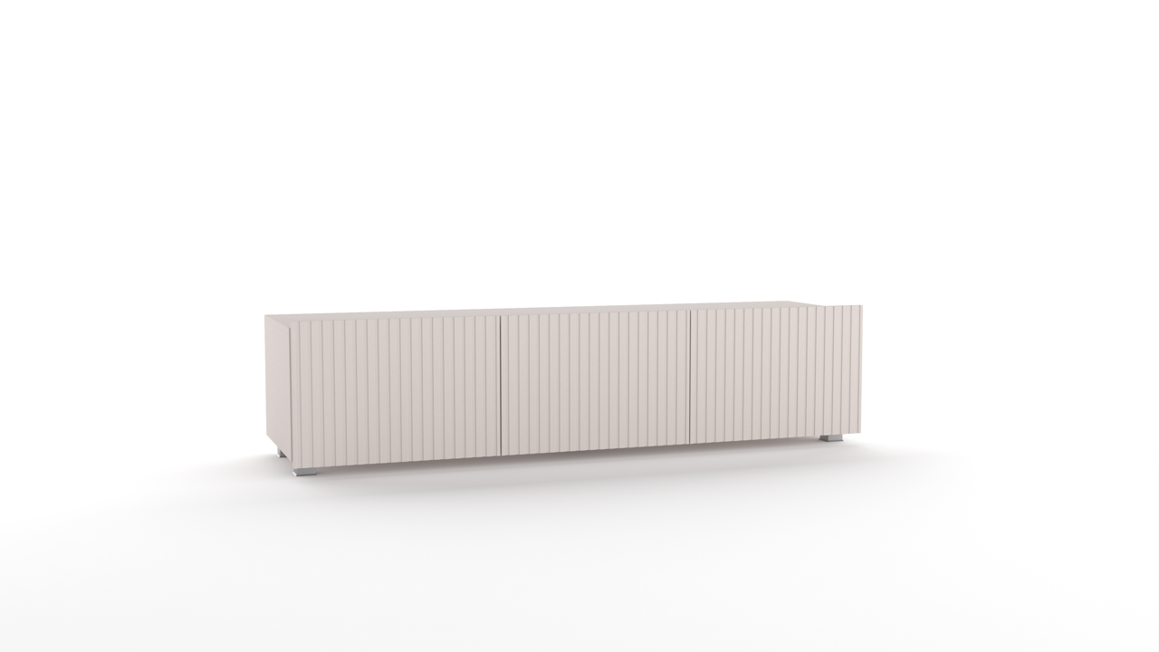 Charakterystycznym elementem kolekcji są delikatne pionowe frezy, które nadają meblom wyjątkowego charakteru, zachowując jednocześnie minimalistyczną estetykę. Matowe wykończenie oraz starannie dobrane materiały gwarantują trwałość i komfort użytkowania.