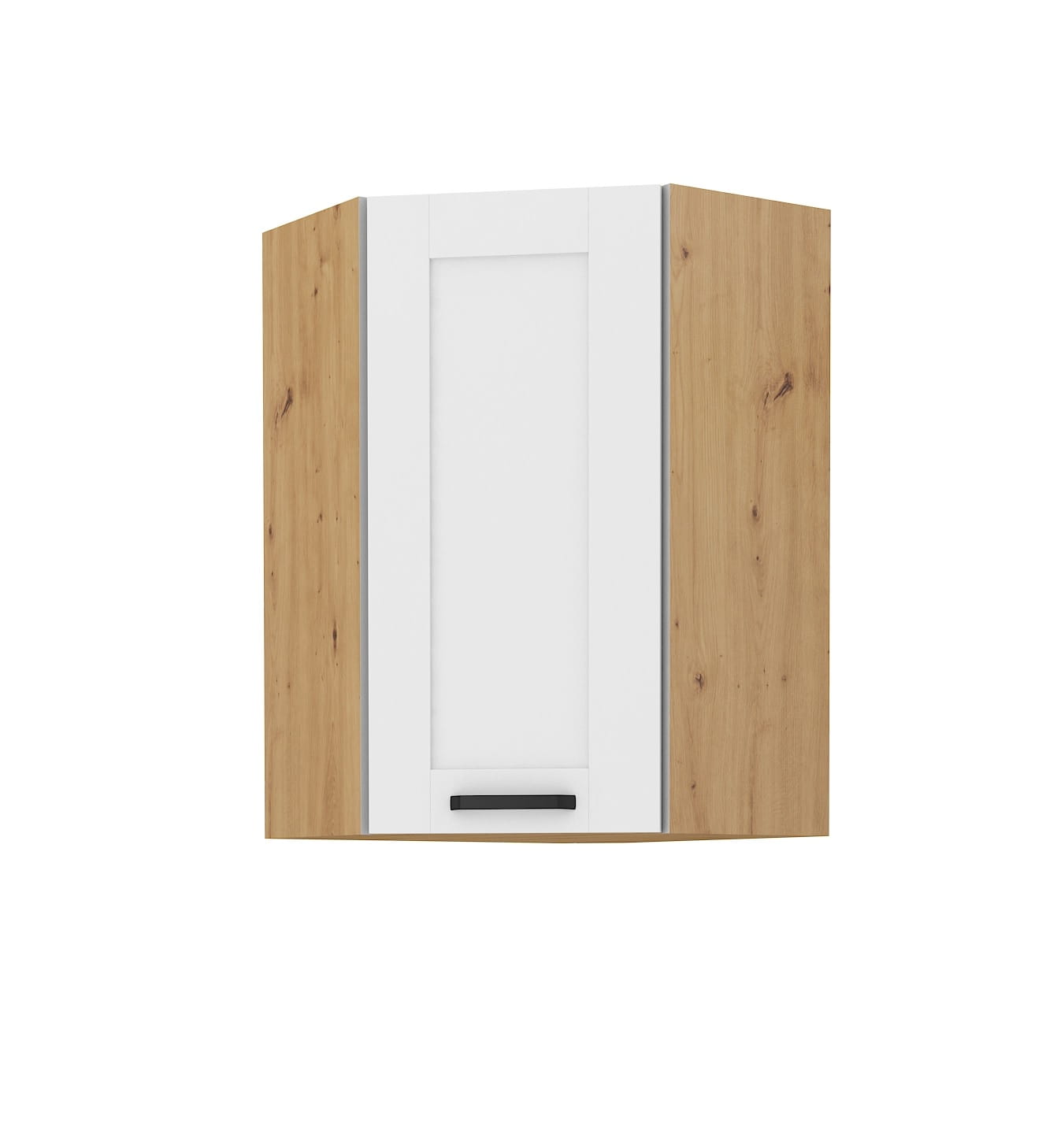 Luna biały/artisan 60x60 GN-90 (45°) 1F - szafka górna wisząca narożna. Wyposażona została w front łączony pod kątem 45°.