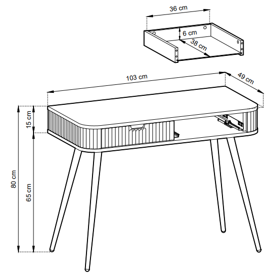 ✔ Dolny i górny blat oraz wnętrze wykonane z płyty laminowanej 18mm.