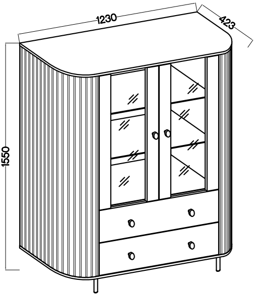 Witryna Ovalio 2F2S beż piaskowy 123 cm