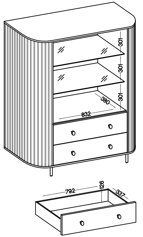 Wymiary witryna Ovalio 2F2S: