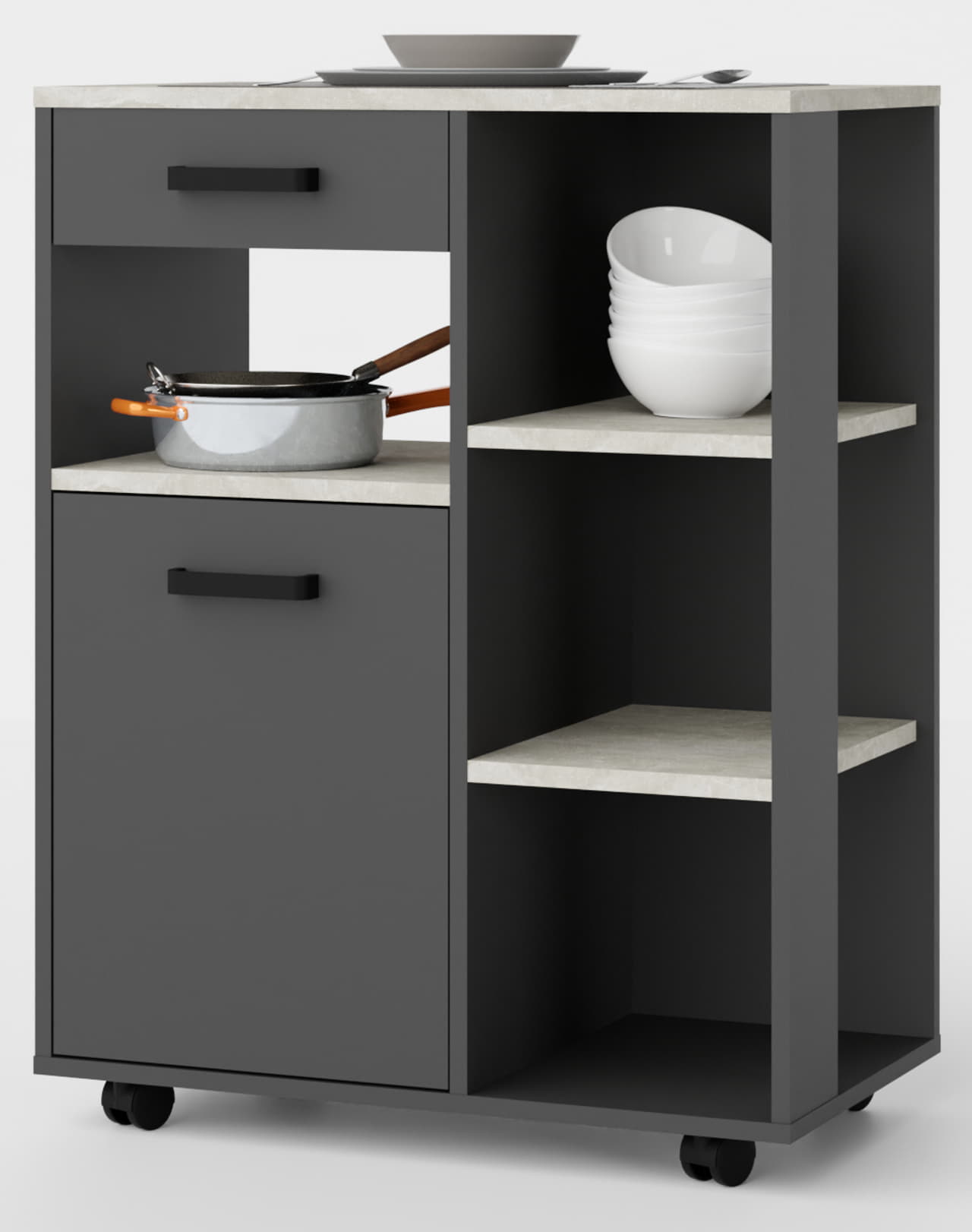 Bufet kuchenny Linda w kolorze antracytowym to doskonały wybór dla osób, które cenią eleganckie, nowoczesne rozwiązania i chcą, aby ich kuchnia wyróżniała się stylem oraz klasą.