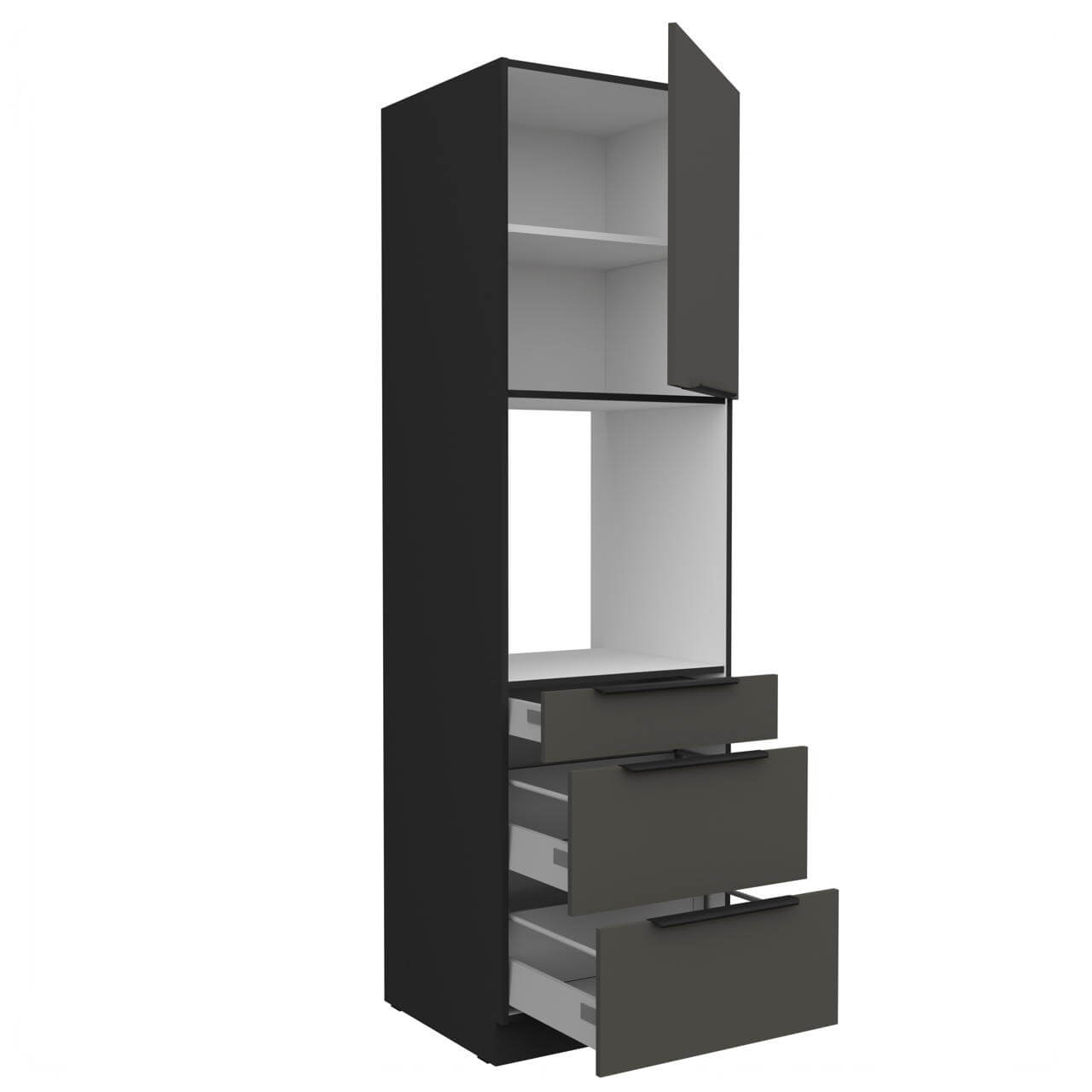 Aria grafit/czarny 60 DPS-210 3S 1F - zabudowa piekarnika 60cm. Słupek wyposażony w jeden front oraz trzy szuflady.