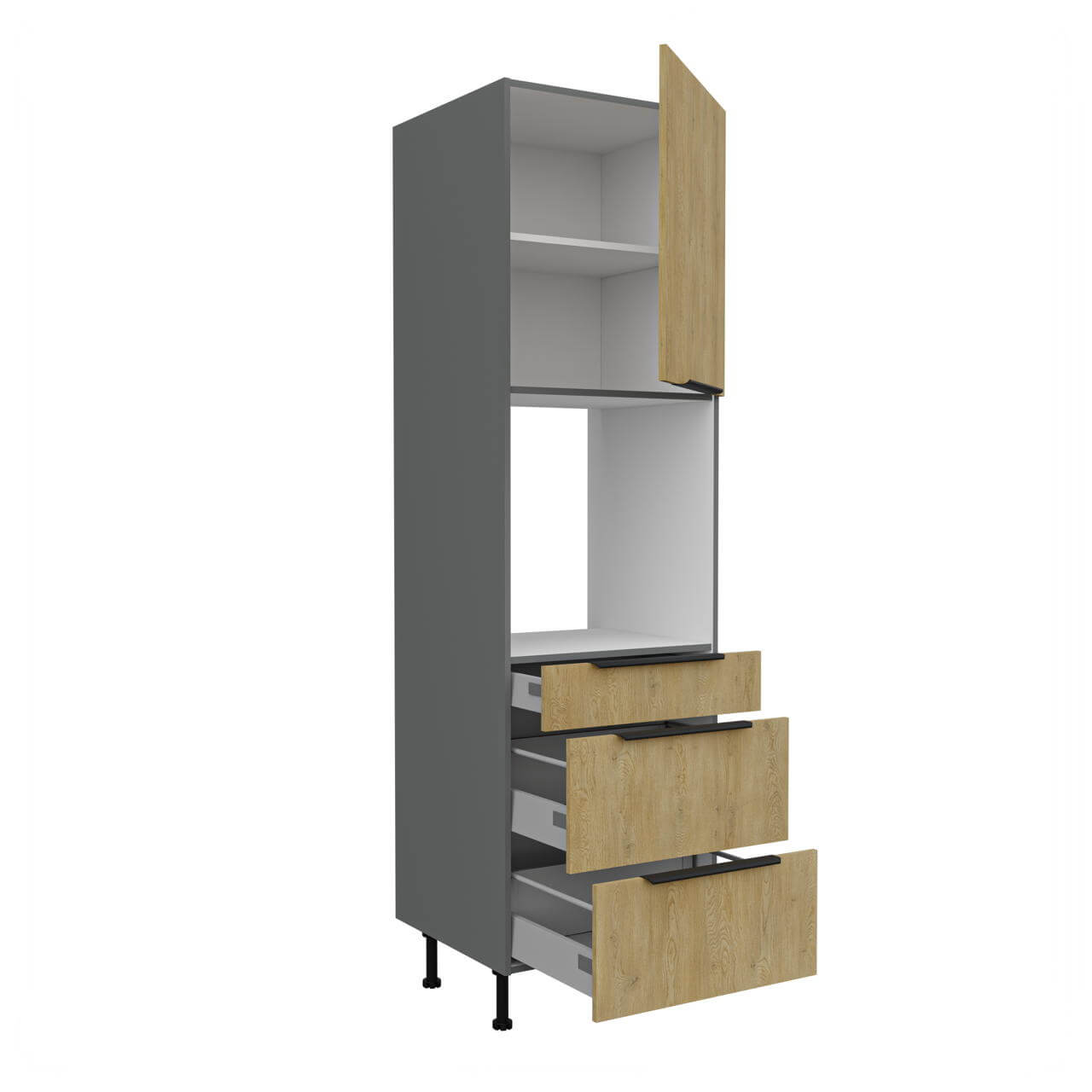 Cremona Antracyt 60 DPS-215 3S 1F - słupek wysoki pod zabudowę piekarnika z szufladami. Wyposażony został w trzy szuflady "Premium-Box".