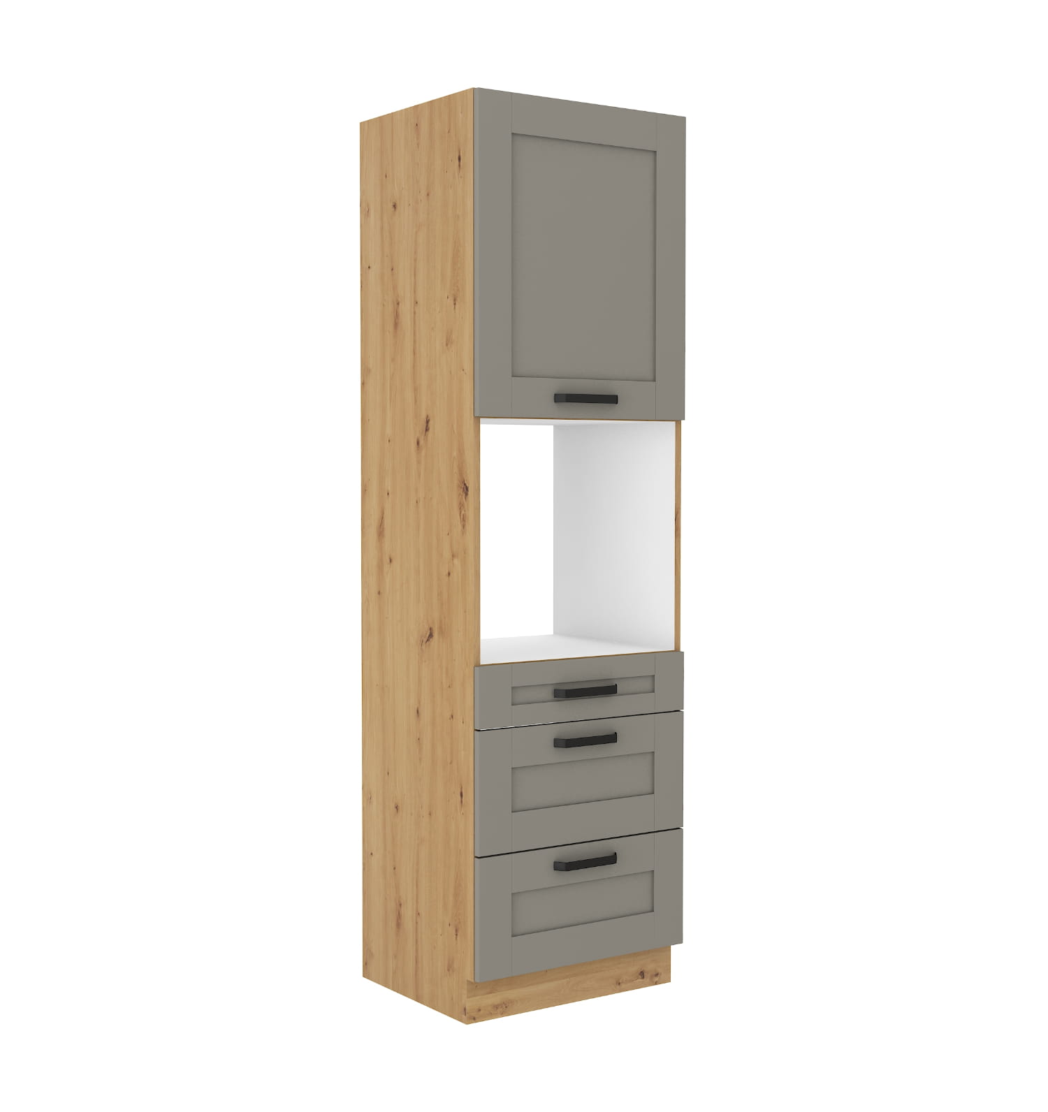 Luna Clay grey / dąb artisan 60 DPS-210 3S1F - słupek wysoki pod zabudowę piekarnika z szufladami. Wyposażony zostałw trzy szuflady premiumbox oraz jeden front.