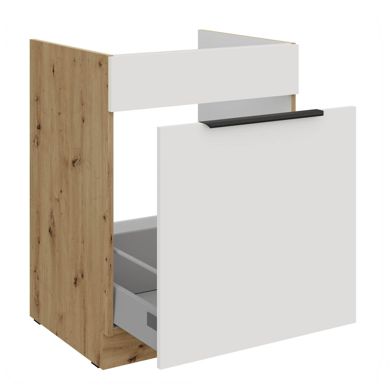 Aria biały/artisan 60 ZL 1S BB - szafka pod zabudowę zlewozmywaka 60cm, posiada 1 wysoką wysuwaną szufladę na kosze na śmieci.