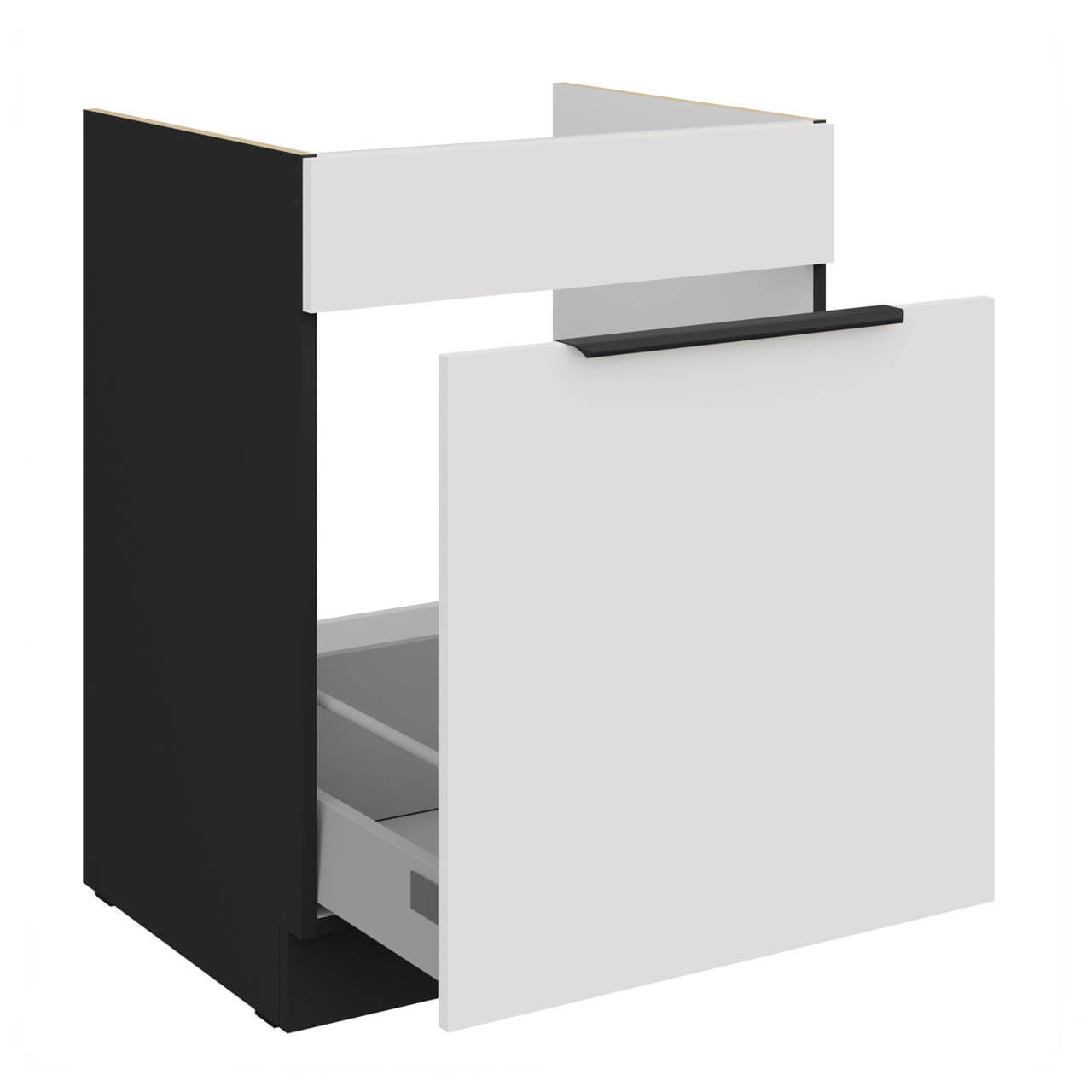 Aria biały/czarny 60 ZL 1S BB - szafka pod zabudowę zlewozmywaka 60cm, posiada 1 wysoką wysuwaną szufladę na kosze na śmieci.