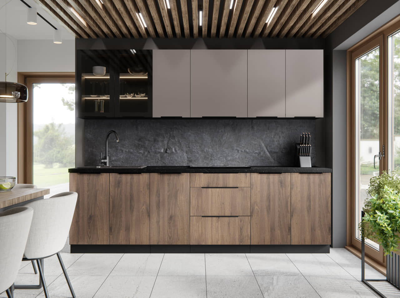 - połączenie korpusów w czerni z kolorem frontów cashmere lub orzech akapi,