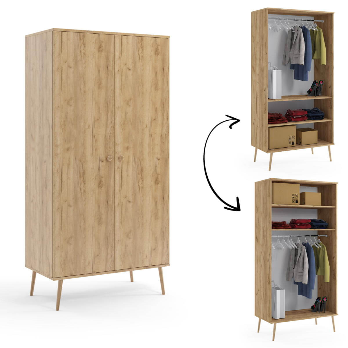 ✔ Szafka z drążkiem i dwoma półkami,