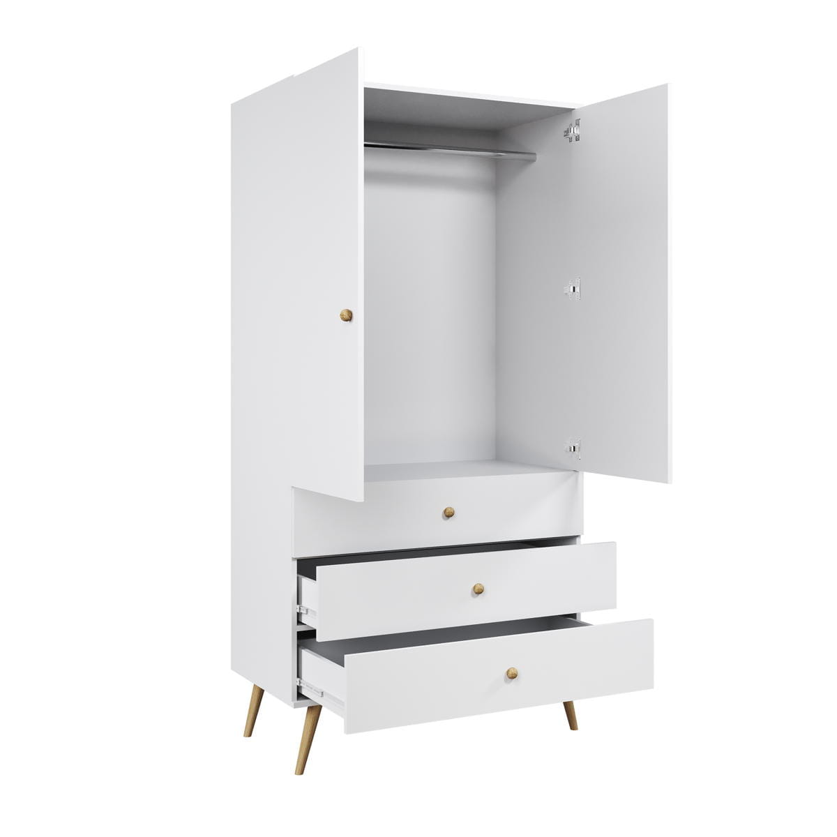 ✔ Szafa głęboka z drążkiem i trzema szufladami,