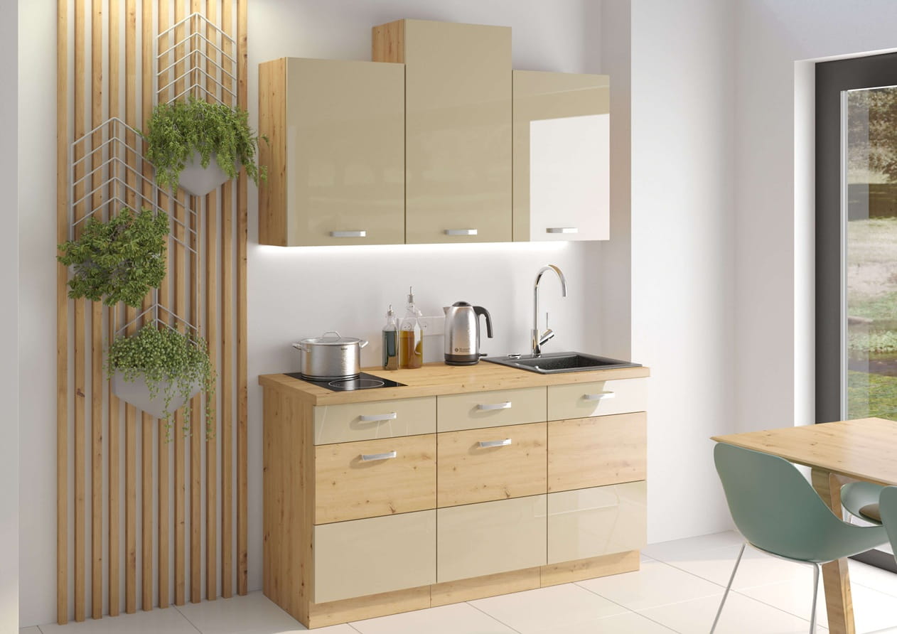 Zestaw mebli kuchennych 150cm Artisan cappucino połysk 6 szafek