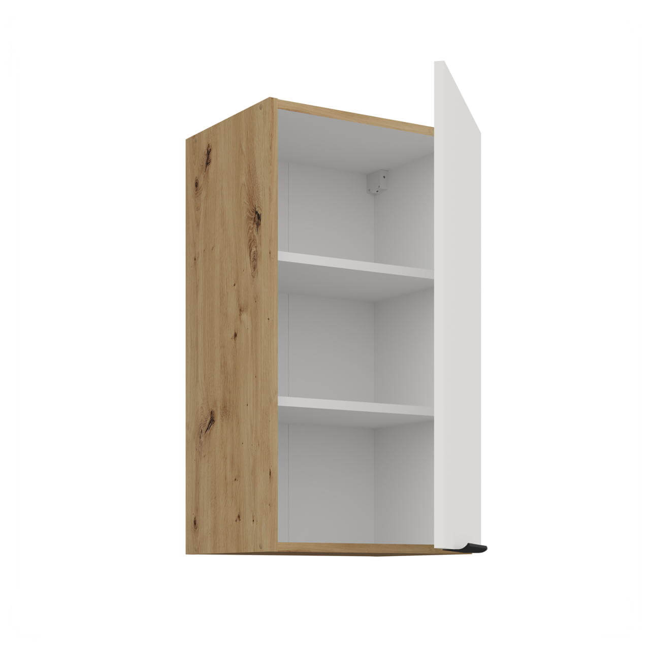 - połączenie korpusu koloru dąb artisan wraz z frontami w kolorze białym,