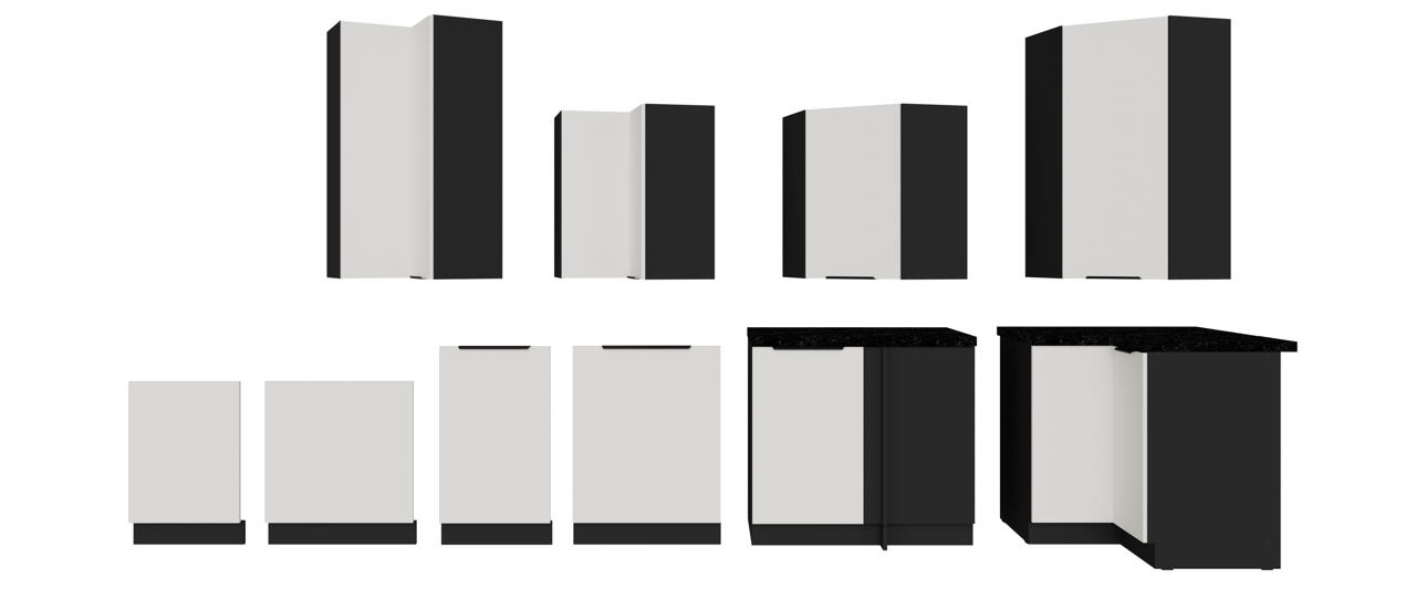 - wraz z każdą z szafek dolnych otrzymują Państwo cokół w kolorze korpusu docięty pod szerokość danej szafki