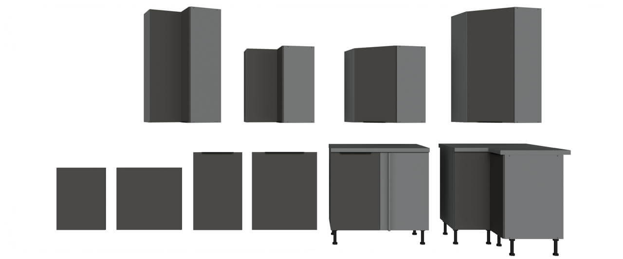 Zestaw mebli kuchennych Aria grafit/antracyt 300+180 cm z blatem