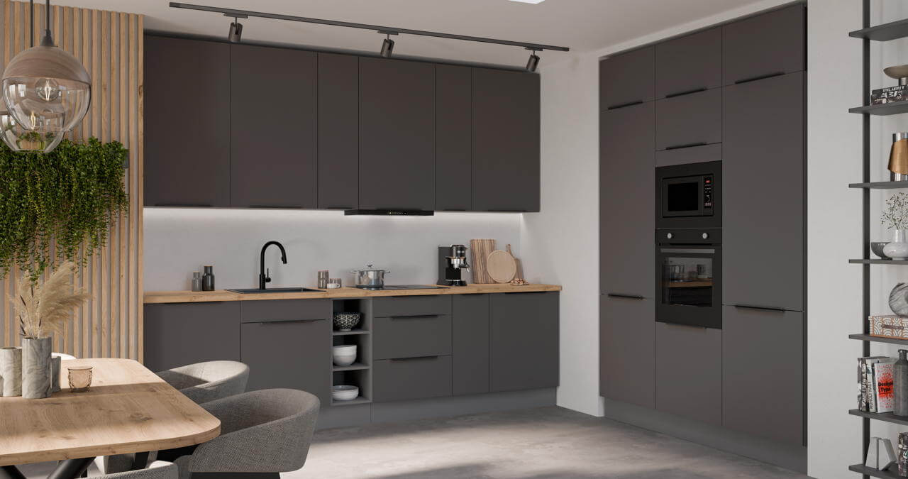 Charakterystyka systemu szafek kuchennych Aria Antracyt: