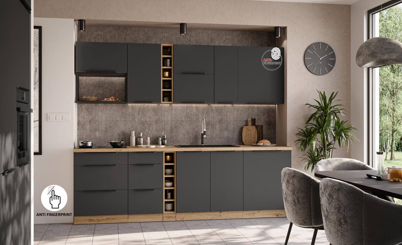 Zestaw mebli kuchennych Aria grafit/artisan 255 cm