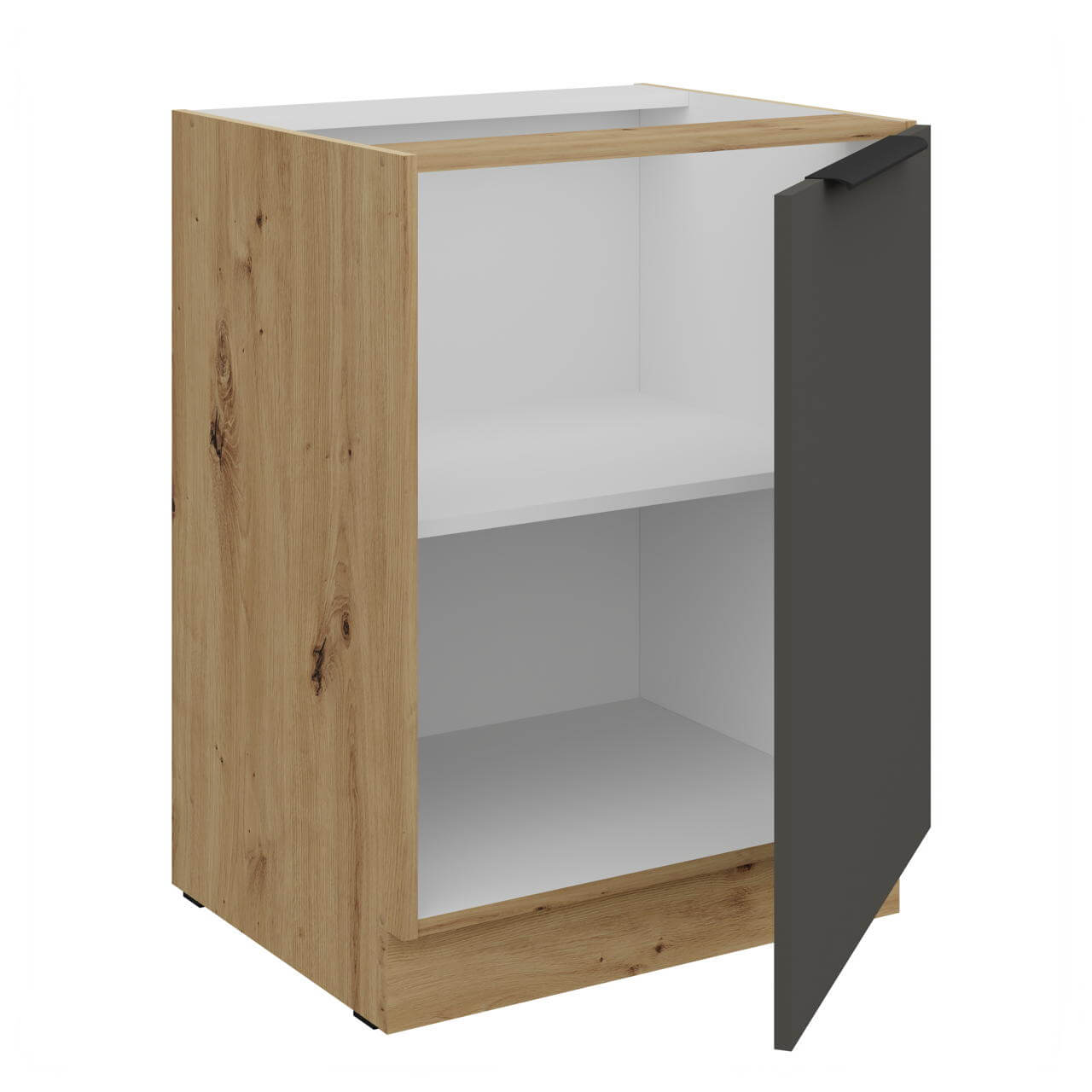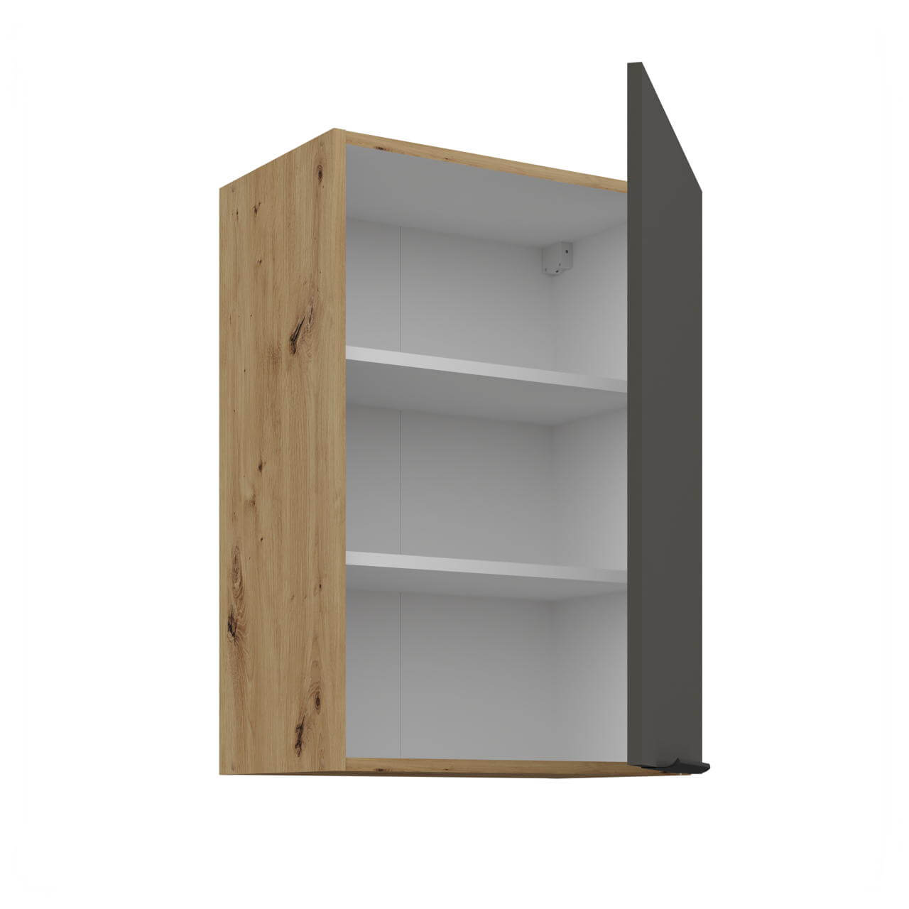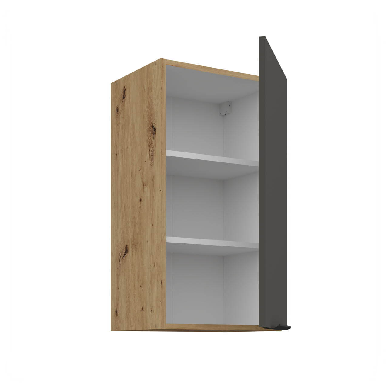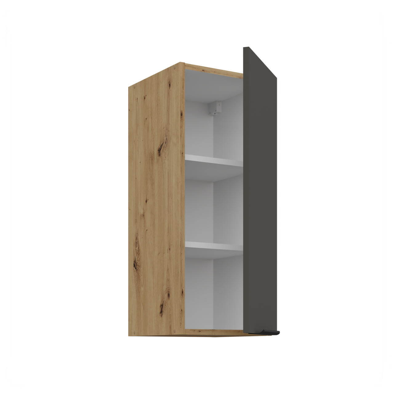 - połączenie korpusu w odcieniu dąb artisan z frontami w kolorze grafitowym,