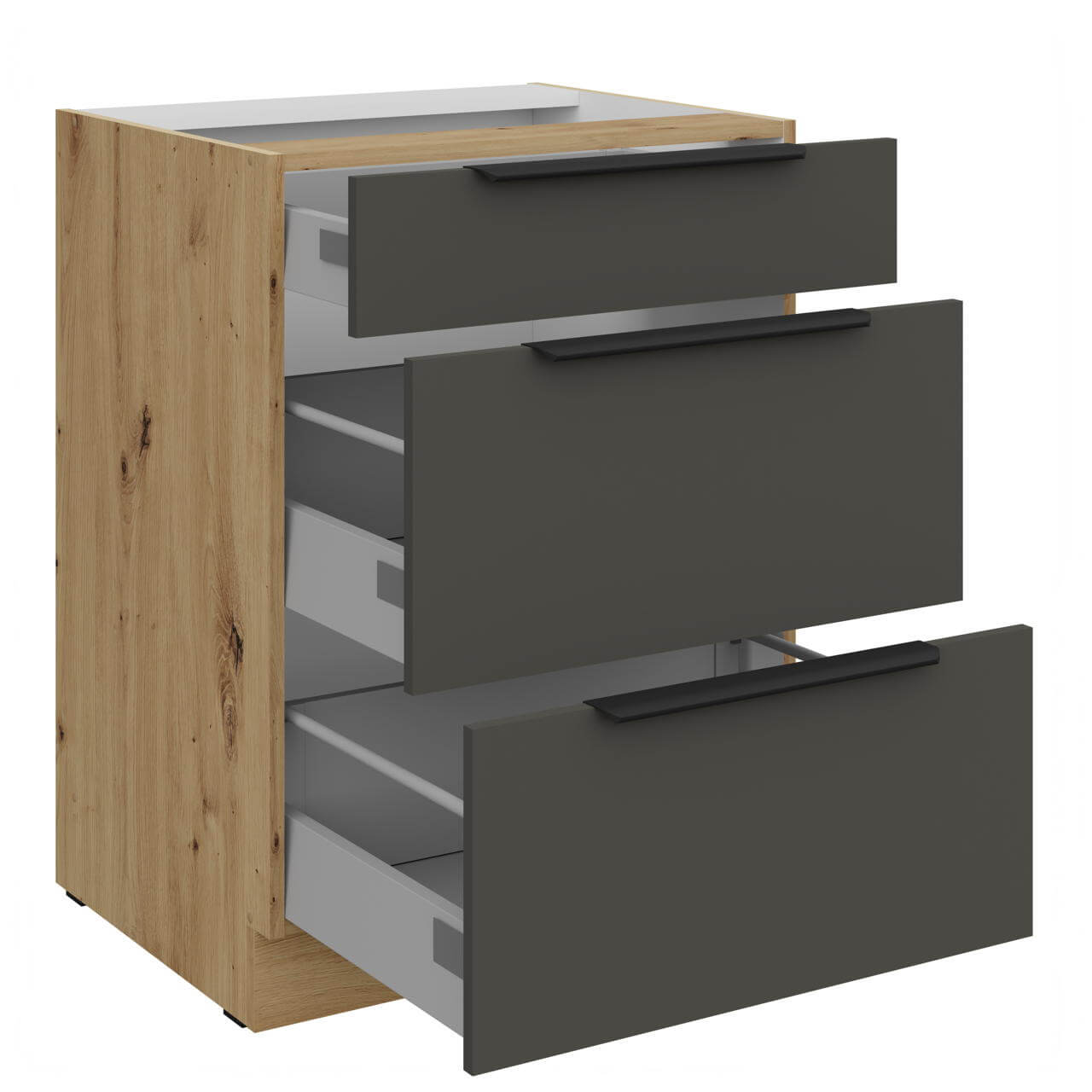 - 60 D 3S BB - szafka 60cm z trzema szufladami Premiumbox - wymiary: szer. 60cm / wys. 82cm / głęb. 52cm,