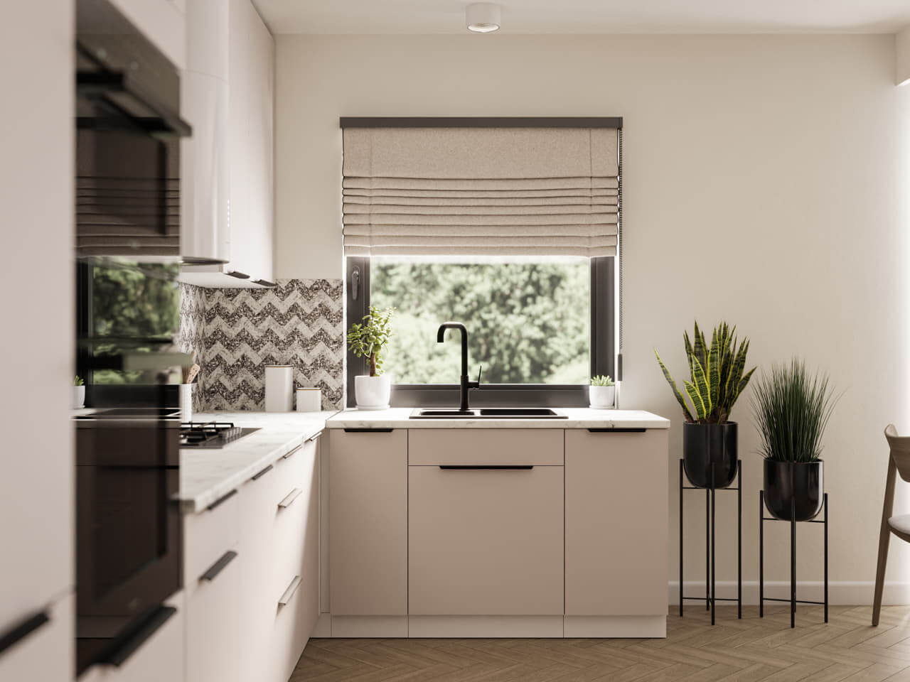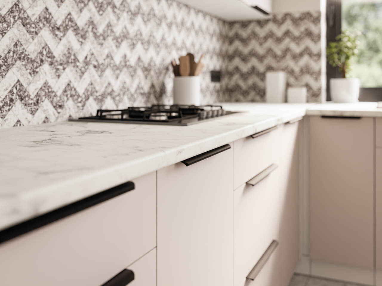 Kolekcja kuchni Como to harmonijne połączenie subtelnej elegancji i nowoczesnej funkcjonalności. Białe korpusy wprowadzają do wnętrza lekkość i świeżość, stanowiąc doskonałe tło dla stylowych, kaszmirowych frontów. Ten delikatny, ciepły odcień nadaje kuchni przytulnego charakteru, jednocześnie zachowując jej minimalistyczny i ponadczasowy wygląd.