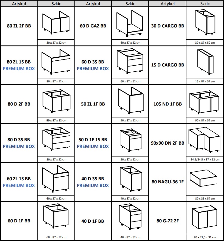 - wraz z każdą z szafek dolnych otrzymują Państwo cokół w kolorze korpusu docięty pod szerokość danej szafki