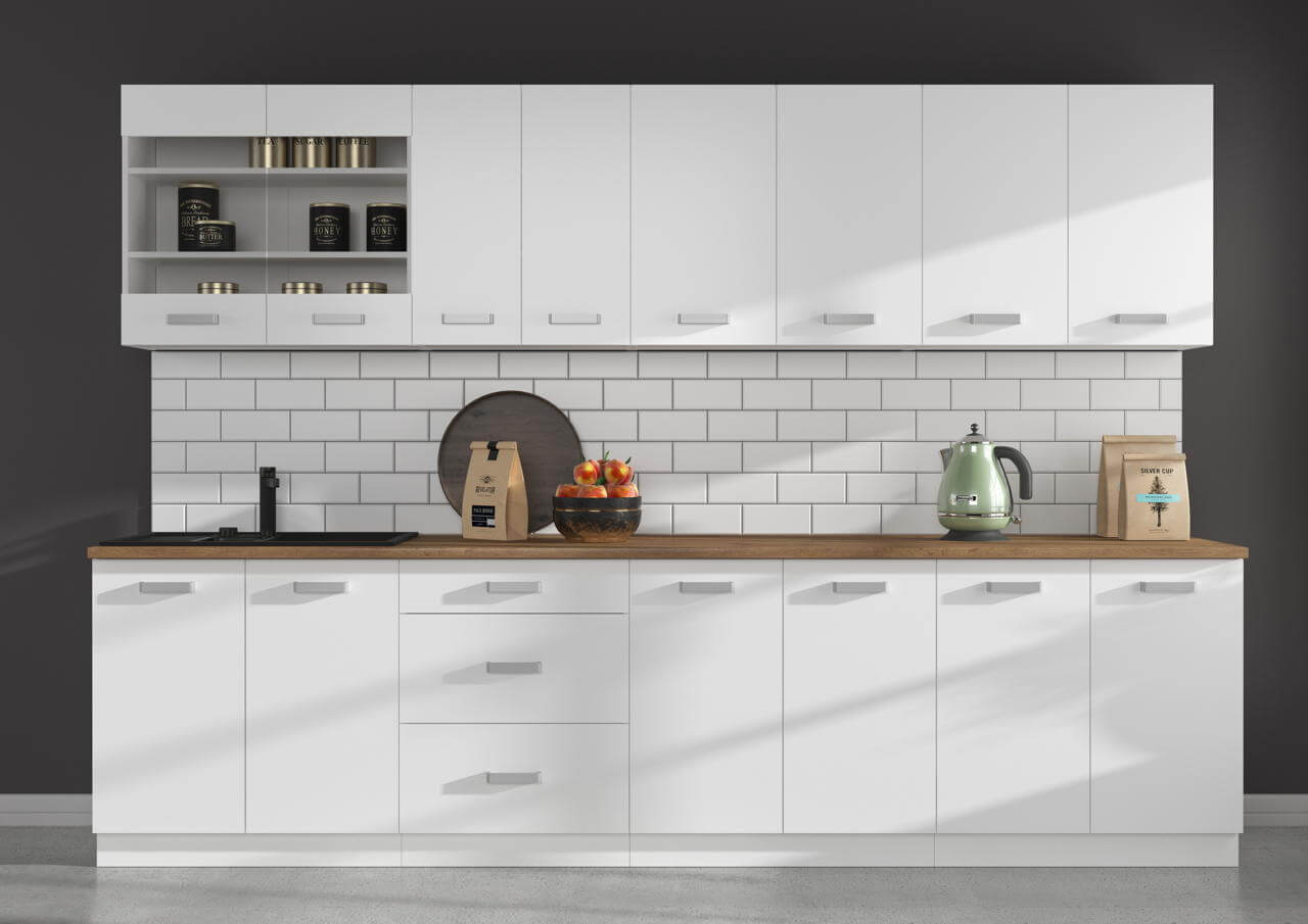 Zestaw mebli kuchennych Eko White 300 cm 8 szafek z blatem