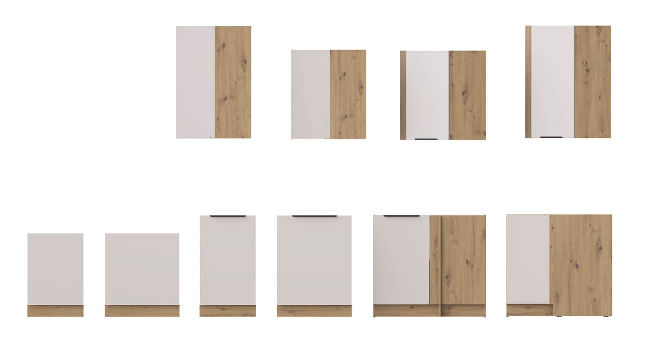 - połączenie korpusu koloru dąb artisan wraz z frontami w kolorze cashmere,