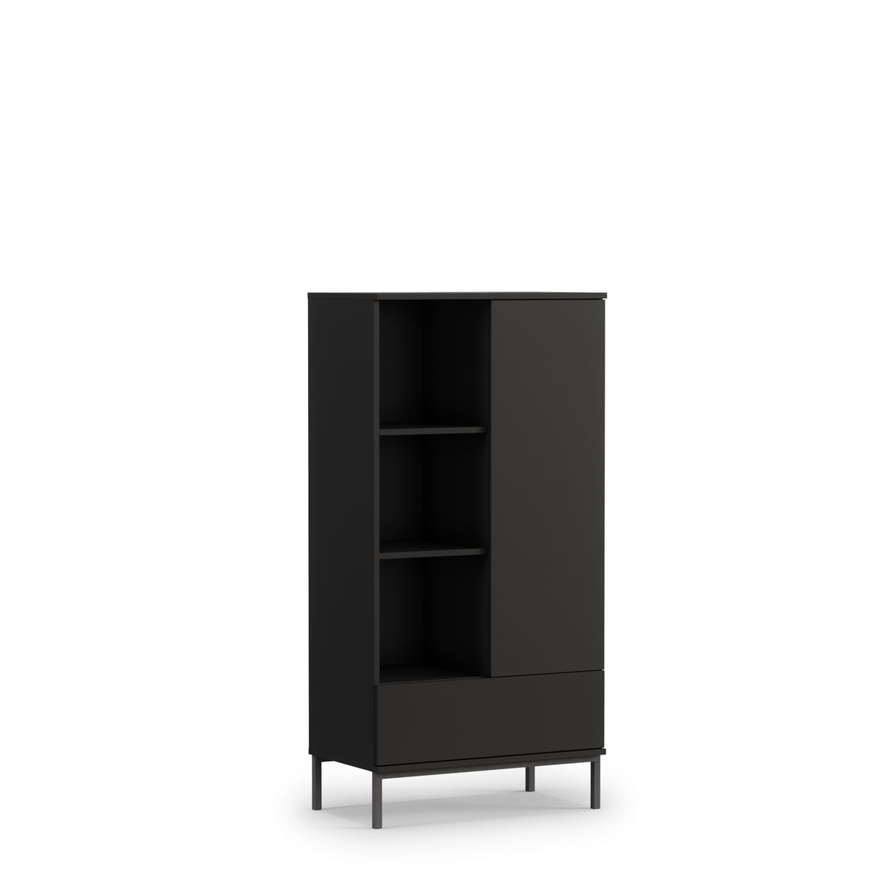 Kolekcja Querty to propozycja dla osób chcących zaaranżować swój salon w stylu LOFT. Elementy systemu zostały wyposażone w czarny metalowy stelaż. Drzwi oraz szuflady posiadają system bezuchwytowego otwierania - system push to open. Kolekcja dostępna jest w trzech wybarwieniach: czarny, biały oraz hikora. Szeroki wybór kolorystyki oraz mnogość brył pozwoli zaaranżować salon wedle Twoich potrzeb.