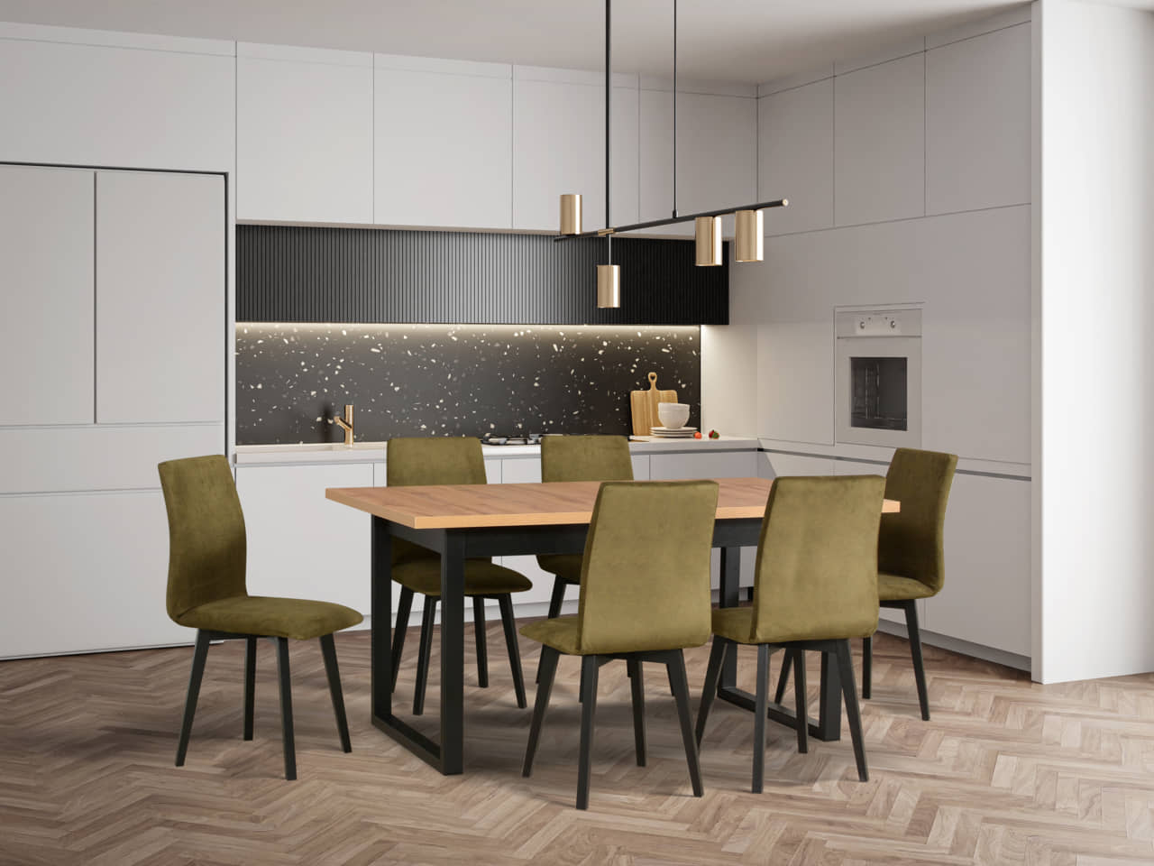 Zestaw stół rozkładany Ikon 3 L + 6 krzeseł drewnianych Luna 2