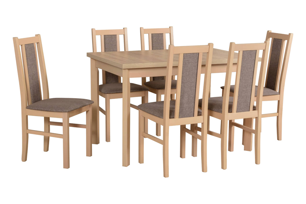 Zestaw stół rozkładany Max 5P + 6 krzeseł drewnianych Bos 14