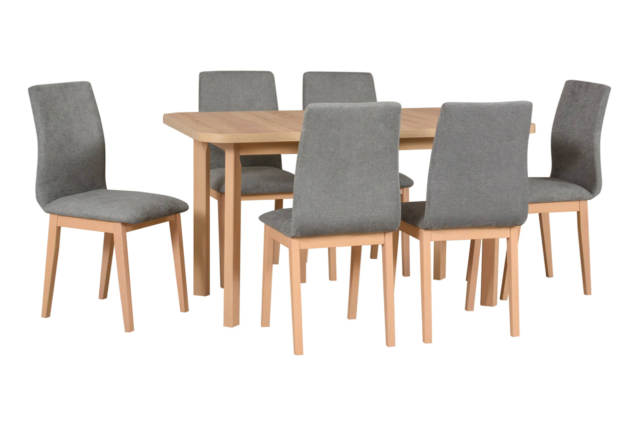 Zestaw stół rozkładany Wenus 2P + 6 krzeseł drewnianych Luna 1