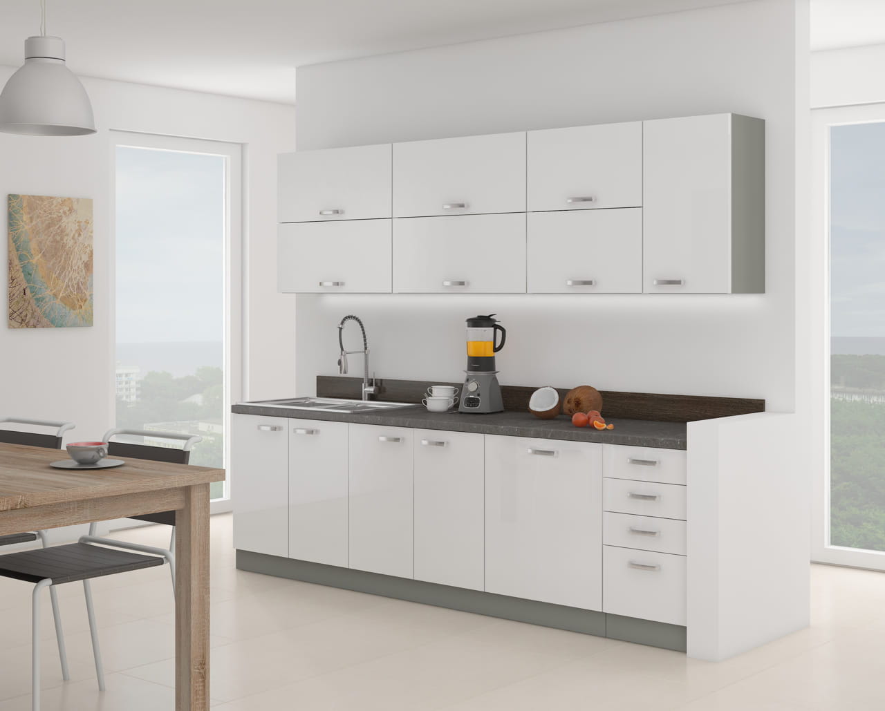 Zestaw szafek kuchennych Bianca 260cm 8 szafek+blat